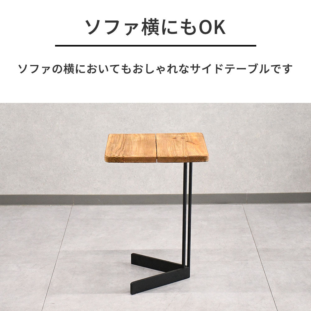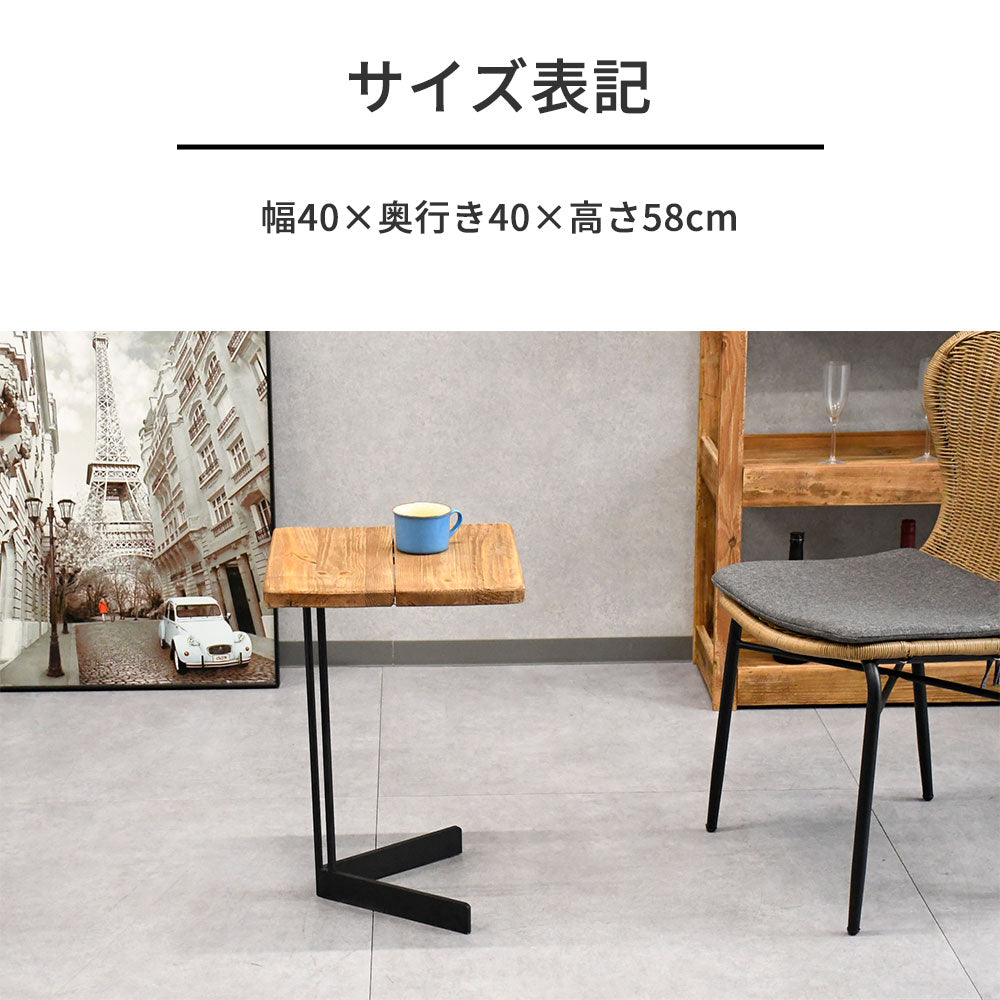 【インダストリアルモダン】リサイクルウッド 無垢材 サイドテーブル 木製 アイアン脚 ソファサイドテーブル おしゃれ カフェ風