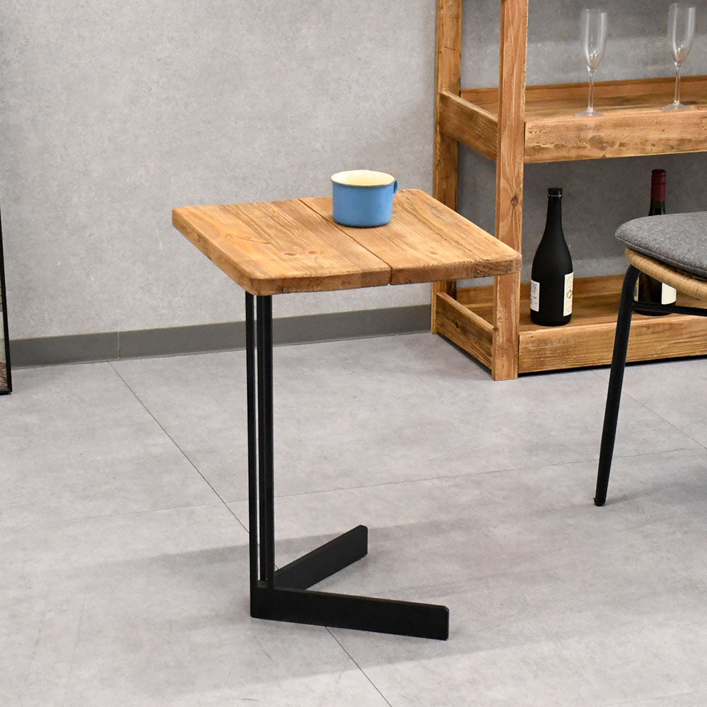 リサイクルウッド無垢材とアイアンを組み合わせた、無骨でおしゃれなサイドテーブル。
