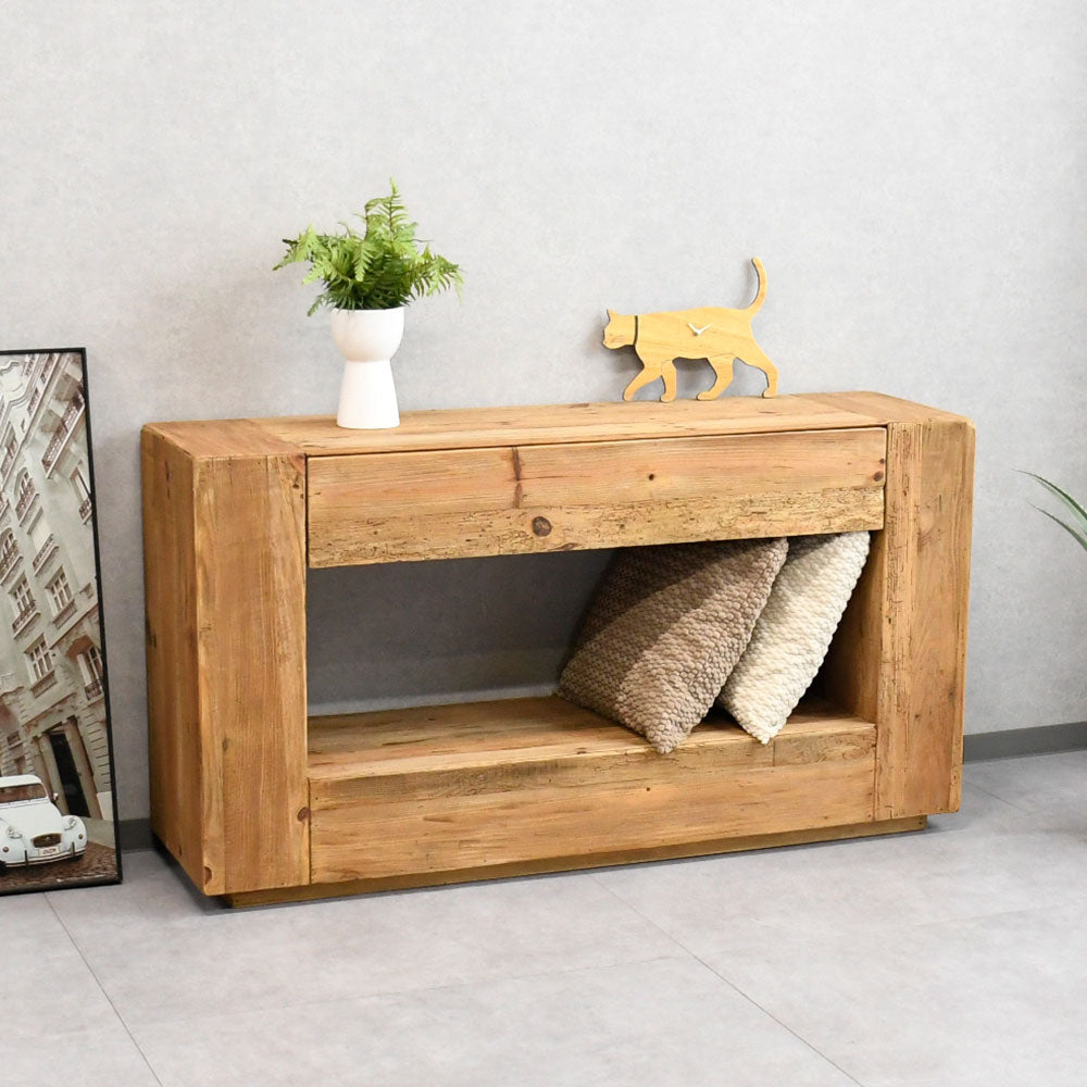 リサイクルウッド無垢材を贅沢に使用した、存在感あふれる140cm幅のコンソールテーブル。
