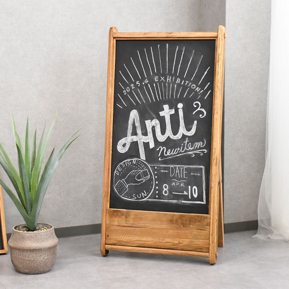 【ヴィンテージナチュラル】リサイクルウッド 無垢材 ブラックボード 折りたたみ式 木製 看板 立て看板 メニューボード おしゃれ カフェ風