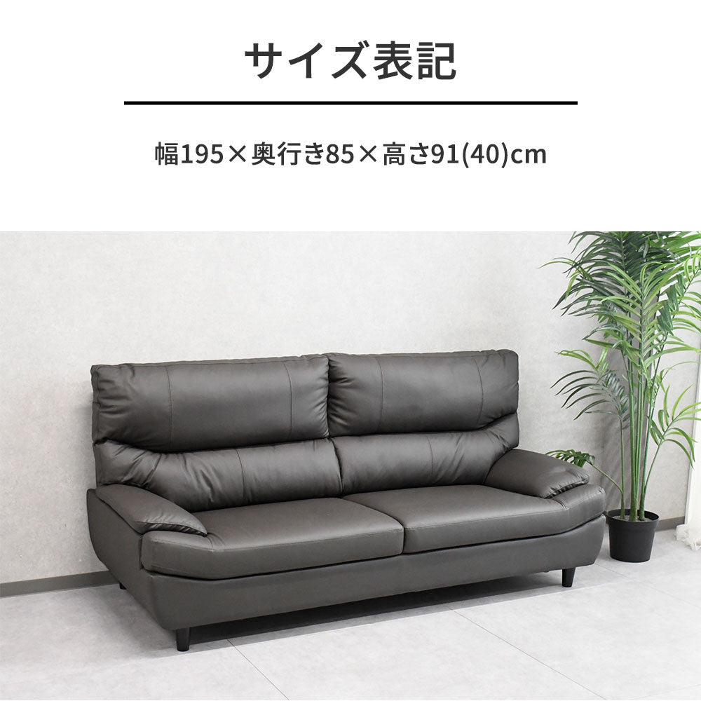 上質な本革のような質感を再現したレザー調の3人掛けソファ。