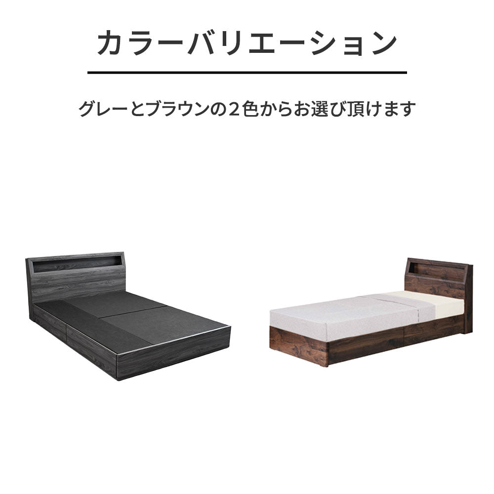 落ち着いた木目が美しい収納付きベッドフレーム。