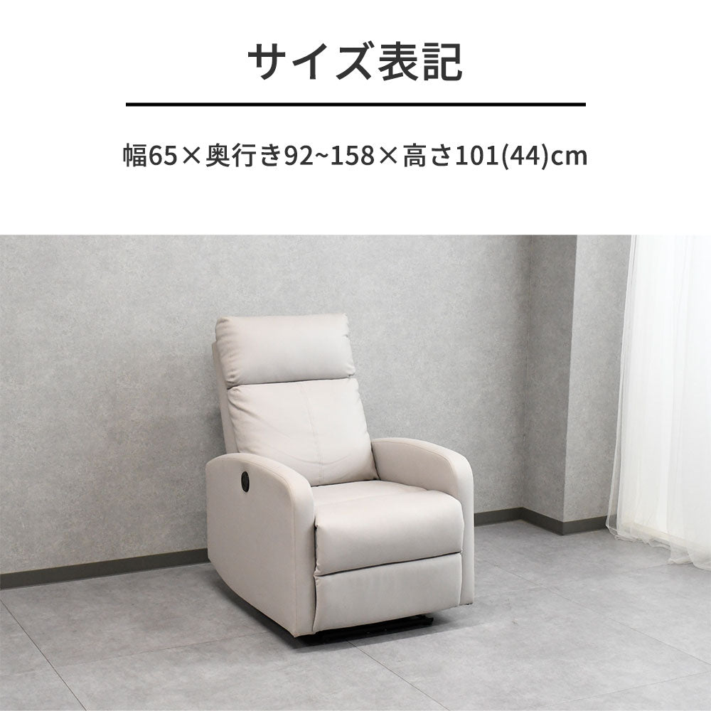 【電動リクライニング】ポケットコイル内蔵 1人掛け ソファ おしゃれ コンパクト リクライナー 合皮 レザー調 リラックスチェア 北欧モダン