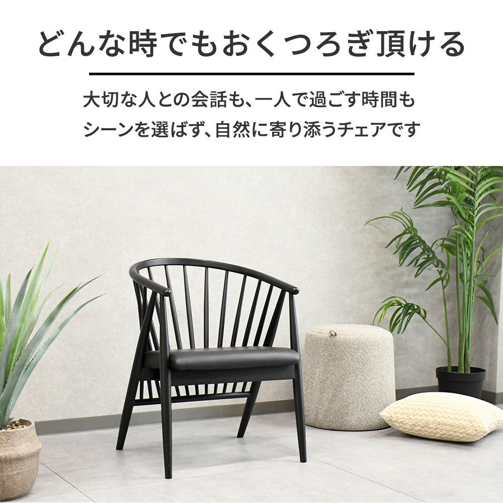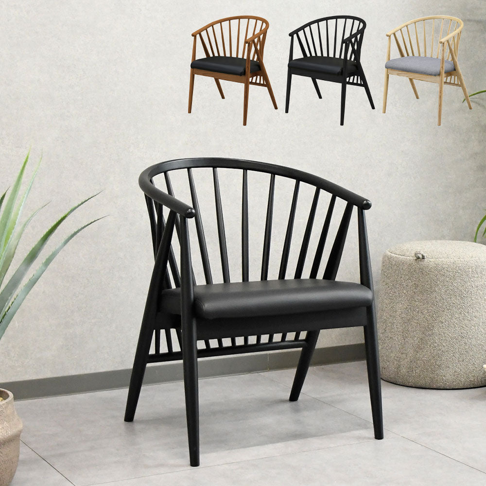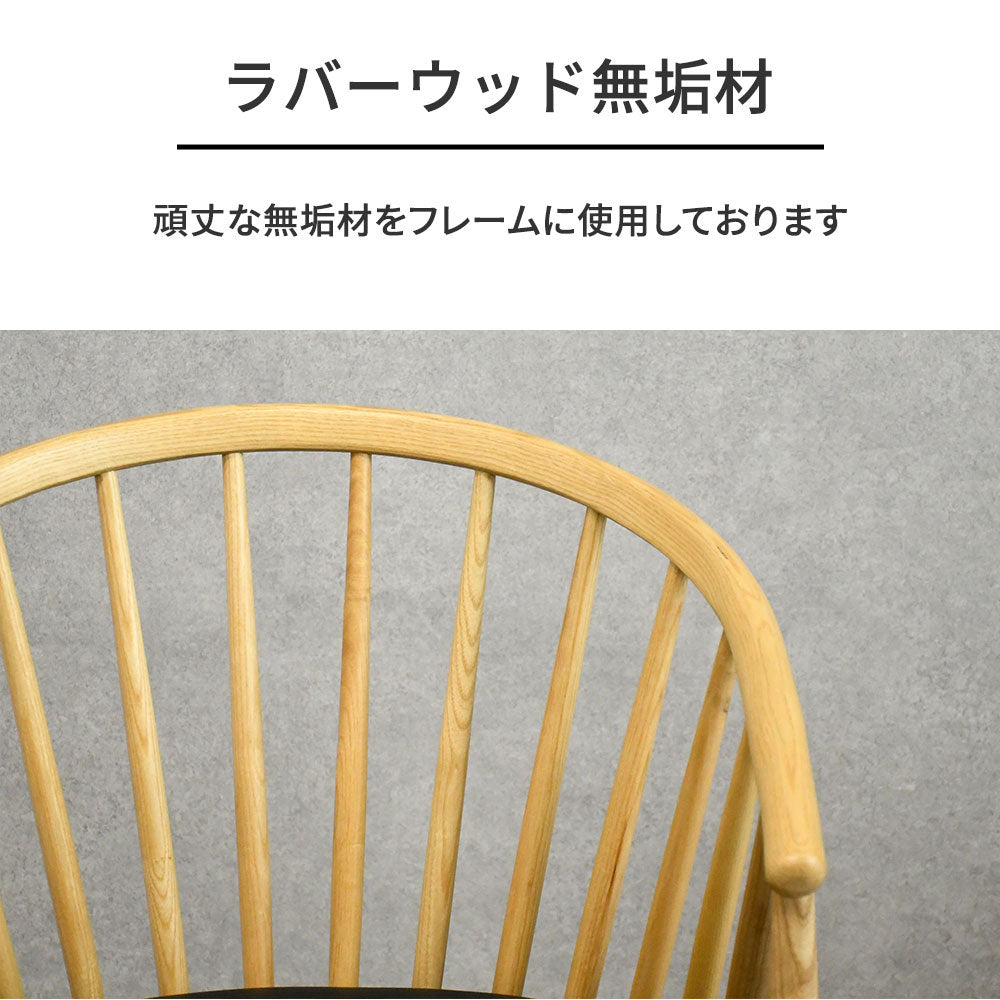 丸みを帯びた背もたれと細めのスポークデザインが美しい、無垢材フレームのラウンドチェア。