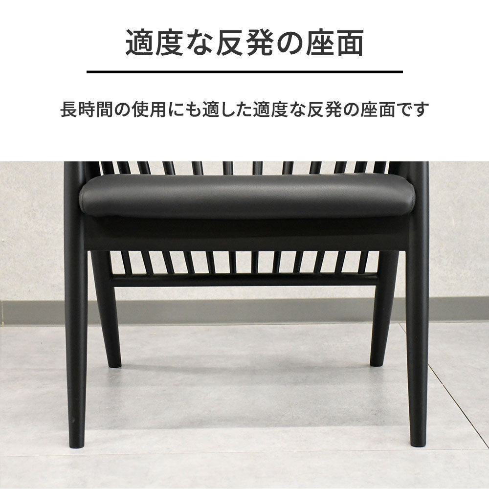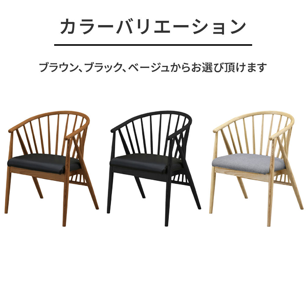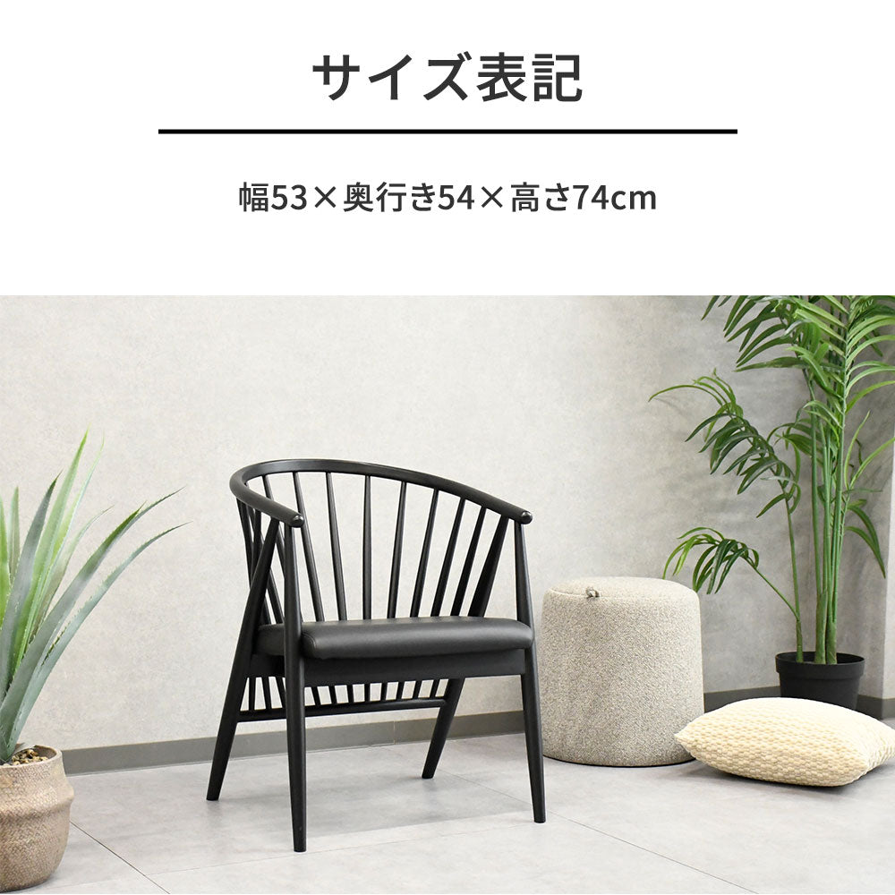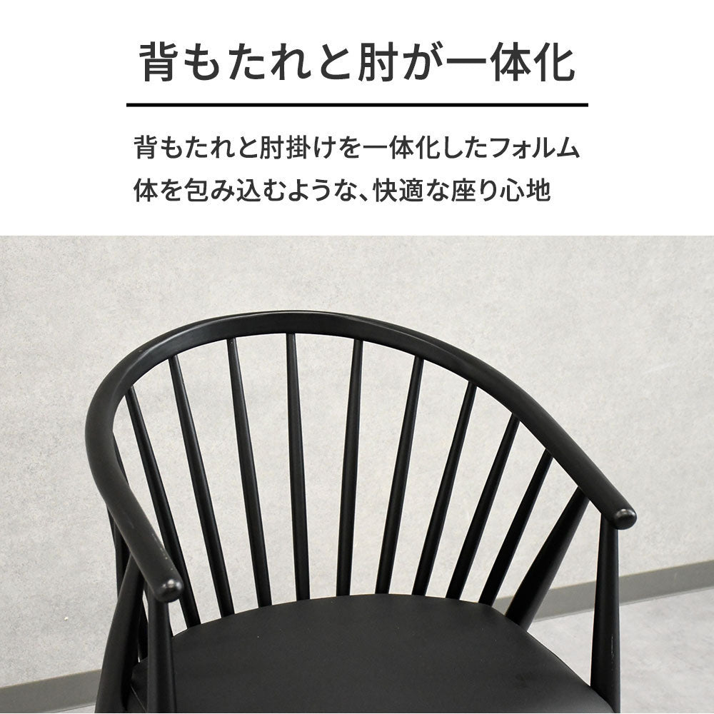 丸みを帯びた背もたれと細めのスポークデザインが美しい、無垢材フレームのラウンドチェア。