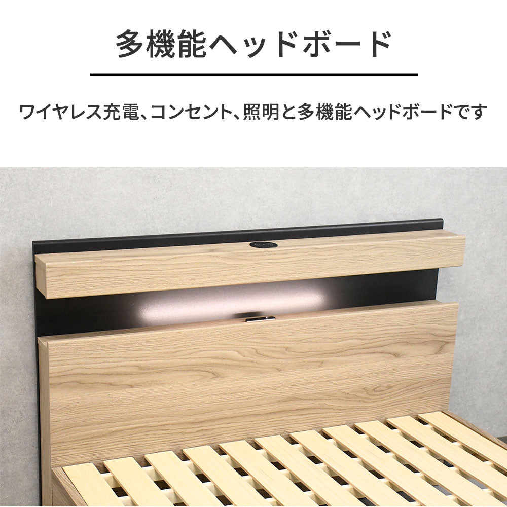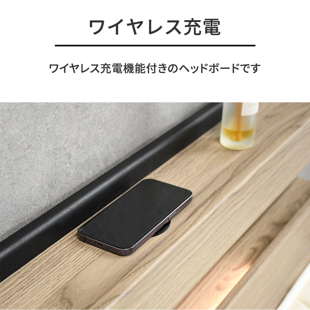 ヘッドボードにはスマートフォンを置くだけで充電できるワイヤレス充電機能と、