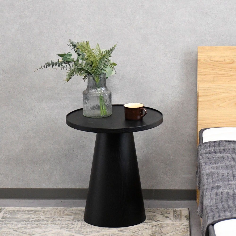 【モダンデザイン】オーク突板 サイドテーブル 46cm幅 シングルレッグ 円形 木製 おしゃれ ベッドサイドテーブル コーヒーテーブル
